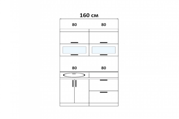 Высота верхних шкафов: 718 мм